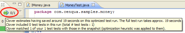 When Optimized tests are being run, the JUnit view displays additional info about savings (as shown in the screenshot below).
