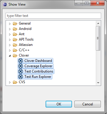 After running tests in a Clover-enabled project, on the left-hand side of this view you will see a tree of tests that were run. On selecting an element on the left-hand side, the right-hand side displays all the application (i.e. non-test) classes that had coverage caused by the selection.