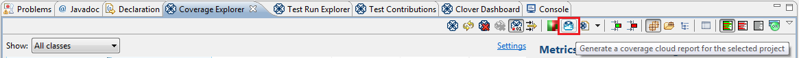 Coverage cloud report are a great way to work out the classes that form major risks (low coverage but high complexity) to your project and its packages, and also to highlight potential quick wins for increasing the overall project or per-package coverage. The coverage cloud report can be generated by right clicking on your Clover-enabled project in the Coverage Explorer view or Test Run Explorer view and selecting Generate Coverage Cloud.