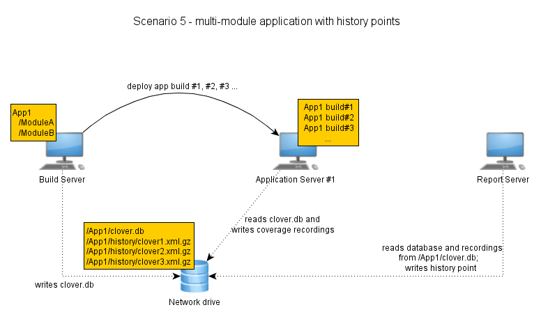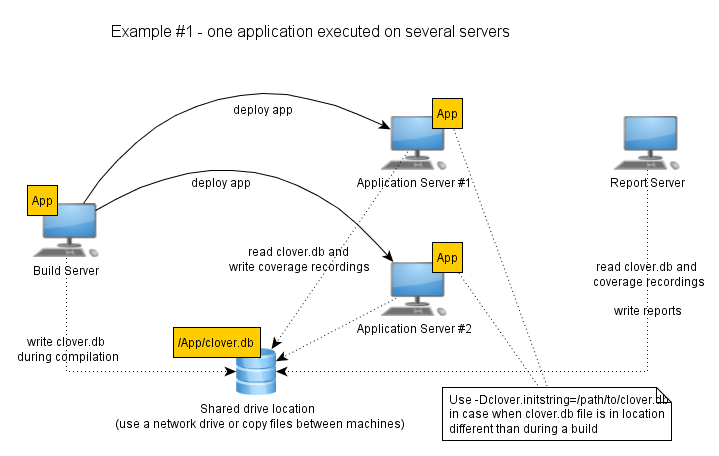 (e.g. a Maven project with a <singleCloverDatabase> or an Ant project with one <clover-setup>) - application is deployed to several machines