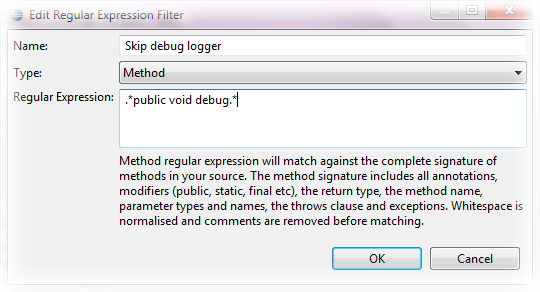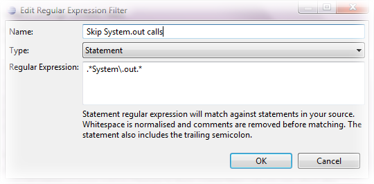 - Excluding methods and statements matching regular expression