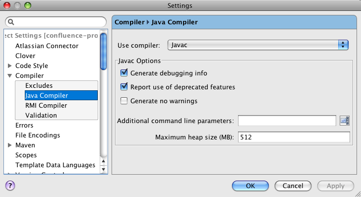 • If you are using an external compiler (the <javac> task with the "fork" attribute set to true), you can set the memoryInitialSize and memoryMaximumSize attributes of the javac task: