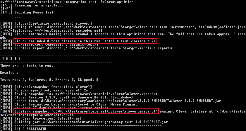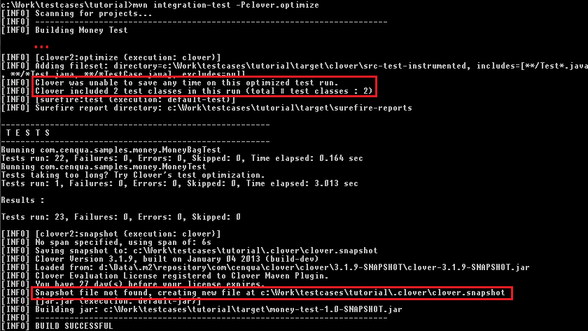 mvn integration-test -Pclover.optimize